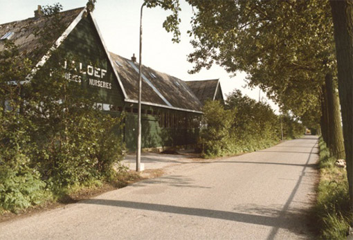 Voor de bouw van wat jarenlang de loods van J.A. Loef was, werd op 2 mei 1929 bij de gemeente Boskoop een bouwaanvraag ingediend door J.H. van Osnabrugge. Hij deed dat toentertijd namens Rien Grootendorst. Er zou een loods worden gebouwd die onderheid was met tien palen. Grootendorst had dit stuk tuin namelijk gekocht met de bedoeling er een pakloods en droogloods met rachels op te bouwen. Het bouwen met open kieren tussen de planken werd vroeger veel gedaan. Ook enkele woningen van Van Osnabrugge, zoals bijvoorbeeld de woning van Fledderus (Zijde) hebben op zolder een dergelijke bouwconstructie. Doordat de wind er doorheen kon waaien, werd het pand, bij Fledderus de zolder en bij Loef dus de loods, droog gehouden.